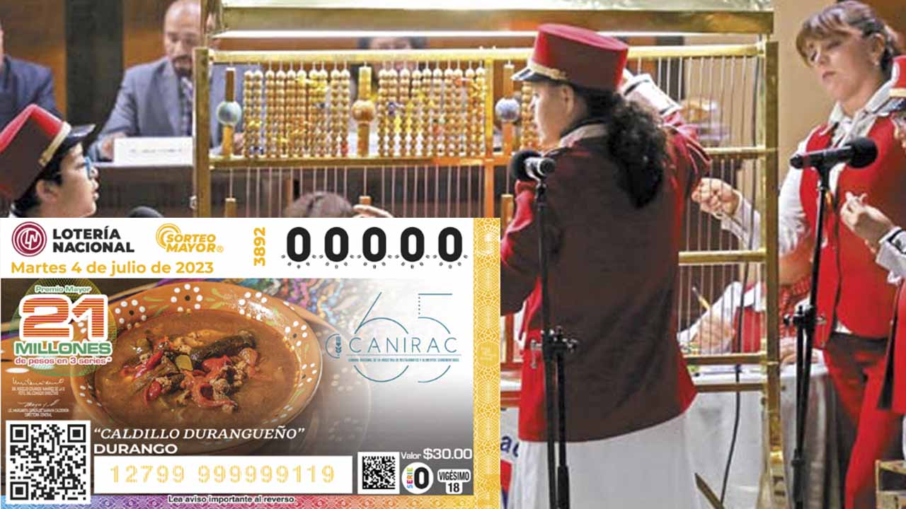 En esta edición el billete 3892 del Sorteo Mayor que celebra los 65 años de la Canirac, el cual reconoce la gastronomía de Dirango a través de sus sabores como es el caldillo durangueño, el asado de bodas, los chicharrones de vieja, las enchiladas de cacahuate y de leche, el pipián rojo, la barbacoa de olla, los frijoles blancos guisados con chorizo y tornachiles que cautivan a todos los visitantes de la región.