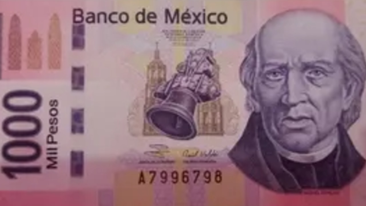 Este billete de mil pesos se caracteriza por ser rosa y violeta, además de por tener la imagen de Miguel Hidalgo y Costilla en el anverso. En ese mismo lado se pueden apreciar la campana de Dolores y dos torres de la misma iglesia.